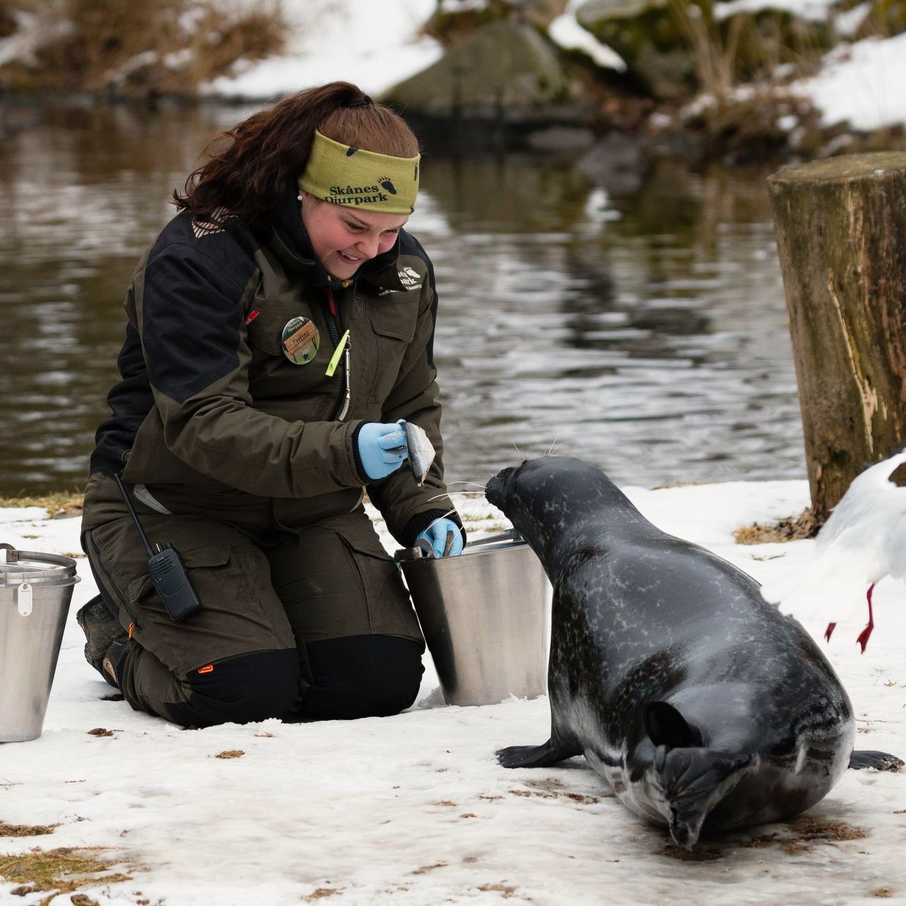 I Skånes Djurpark arbetar teamet på olika sätt mot ett och samma mål: att genom god djurvälfärd sprida kunskap och väcka nyfikenhet kring djur och natur. Förutom utbildade djurvårdare som dagligen ombesörjer djurens skötsel arbetar även zoologer och veterinärer i Skånes Djurpark. En gång i veckan (och vid behov) kommer Skånes Djurparks egna veterinär Kalle och djursjukvårdare Maria för att se till att parkens djur håller sig friska. I tillägg till lärande i parken arbetar vi även aktivt med att sprida kunskap om djur och natur i andra kanaler. Du känner tillexempel kanske igen Kalle från dokumentärserien "Veterinärerna" som visats på TV4. Om vill få en inblick i hur vi arbetar med parkens djur kan du se avsnitten